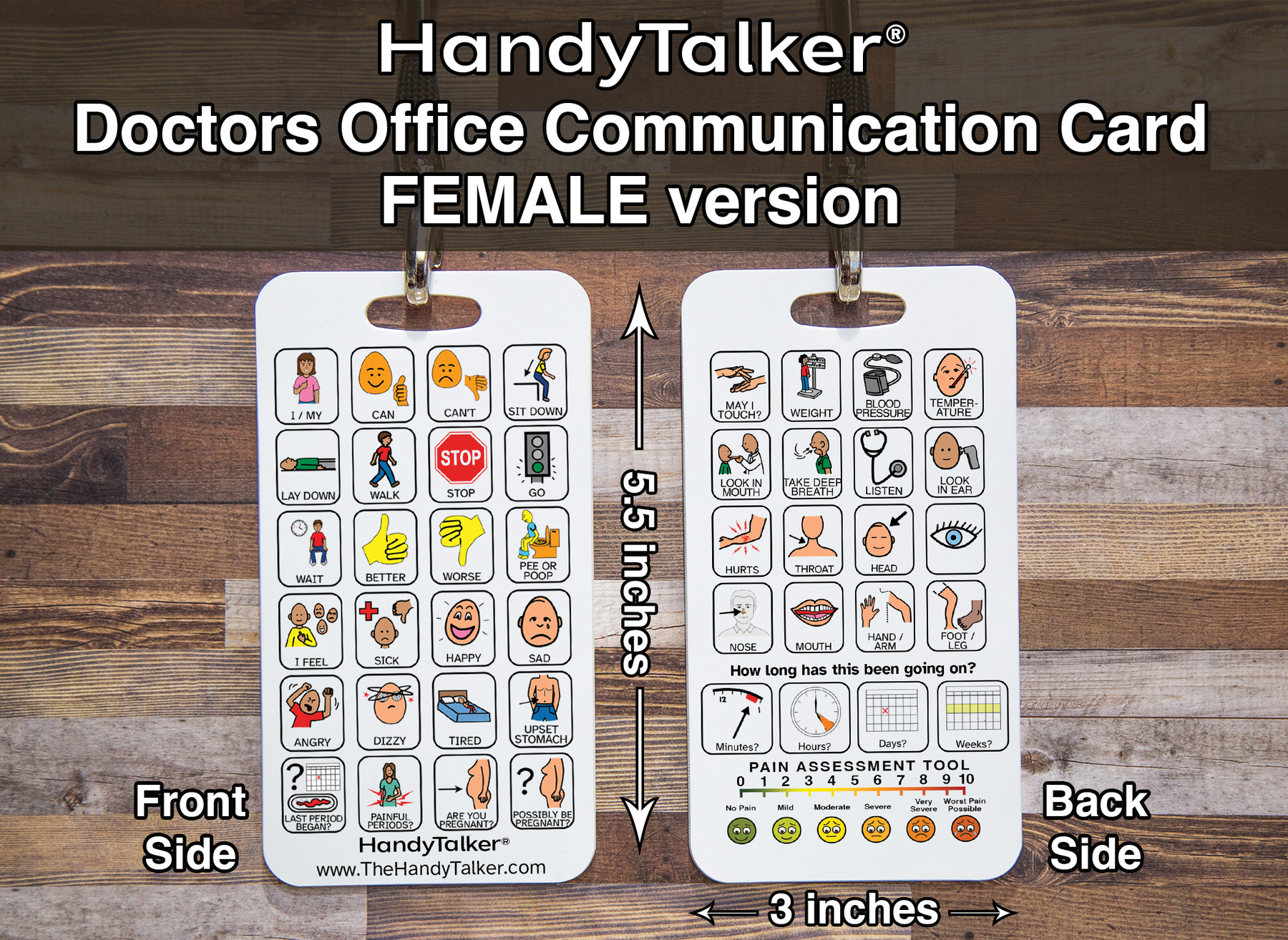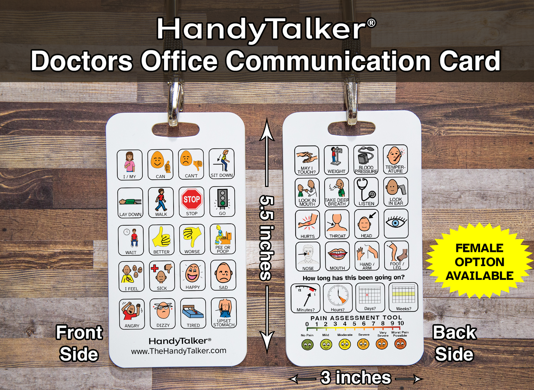 This specific device is perfect to take to the Doctors office to help aid communication. There are two board options and unisex one and a female version.