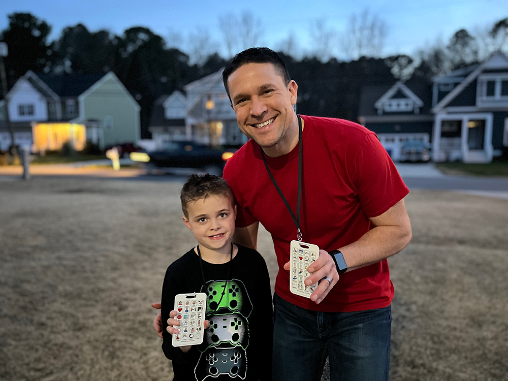HandyTalker® is the original portable, waterproof AAC communication board that allows you to easily communicate basic needs with your loved ones! These are fiber reinforced plastic, 3 inches wide x 5.5 inches tall attached to an included black lanyard. *You could add more than 1 board to a lanyard by adding a connector. Only one board will fit within this specific lanyard. These are rigid plastic and are waterproof! No need to worry about taking it to the beach, pool, in the rain, etc! You can easily disinfect these cards between patients! These cards are rigid and do not bend.